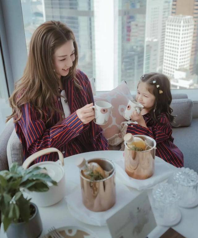 从照片中看得出,钟嘉欣和小女儿穿上了条纹状的母女装,就连发型也是极为相似,四十岁出头的钟嘉欣状态相当不错,面部皮肤白皙又水嫩,光滑的像是剥了壳的鸡蛋,让人十分羡慕。